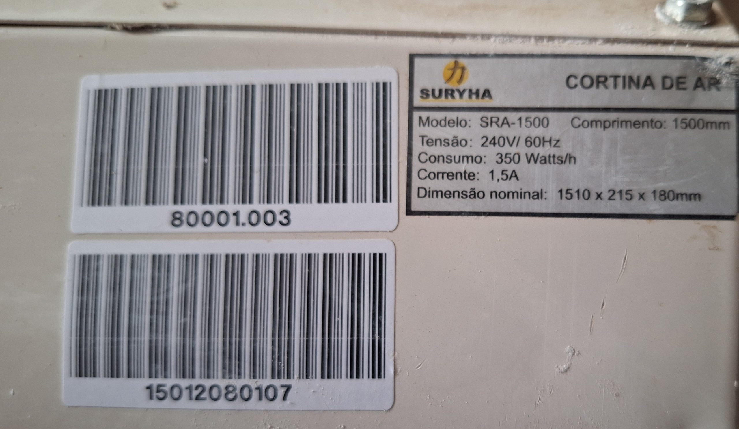 Duas Cortina de ar Suryha 1,50cm comprimento 220v Modelo SRA-1500
